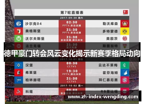在德甲联赛的新赛季即将开始之际,随着豪门球队纷纷进行大规模转会操作,赛季的格局和未来的走势愈发扑朔迷离。尤其是像拜仁慕尼黑、多特蒙德和RB莱比锡等德甲豪门在转会市场上的一系列操作,不仅刷新了球队的阵容...